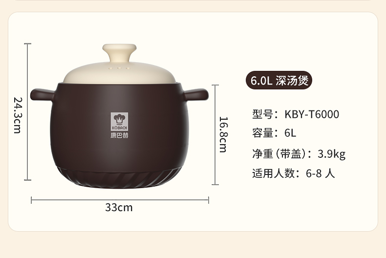 康巴赫 养生陶瓷煲 6L